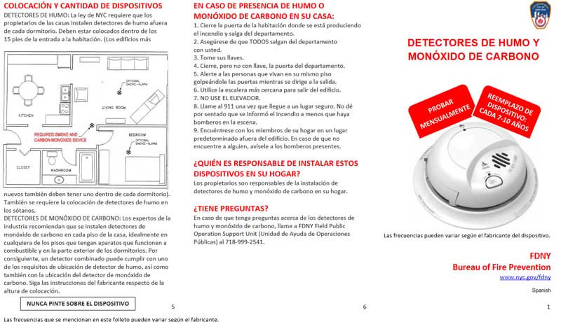 Departamento de incendios da cidade de New York: Detectores de humo y monóxido de carbono